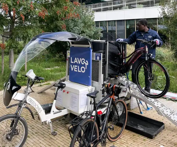"Proposer du service de lavage de vélo couplé à de la maintenance, c'est proposer un service haut de gamme pour les utilisateurs finaux qui retrouvent des vélos nettoyés et en parfait état de marche" explique Remi Hingrai, le dirigeant de Lavovélo.